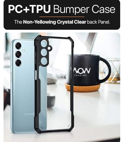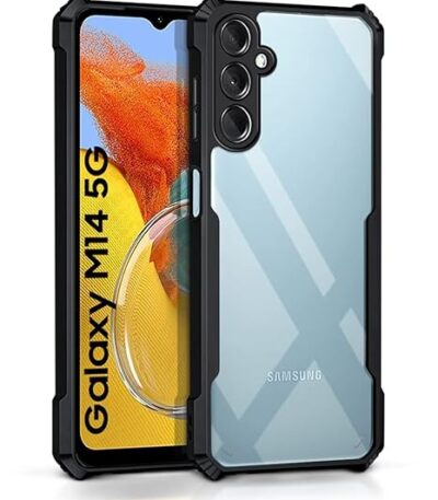 ₹140.00 – ₹249.00Price range: ₹140.00 through ₹249.00Prolet Shockproof Crystal Clear Back Cover Case for Samsung Galaxy M14 5G, 360 Degree Protection, Protective Design, Transparent Back Cover Case (Pc & TPU, Black Bumper)