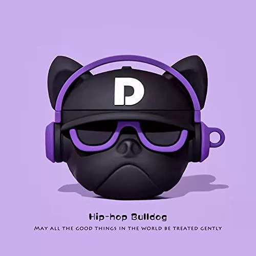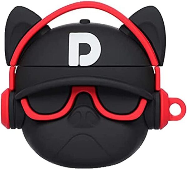 Prolet Airdops Case Cover Compatible with Boat Airdopes 131, Soft Silicone Skin Case Cover Shock-Absorbing Protective Case with Anti-Lost Metal Keyring (Bulldog D Black)-Black