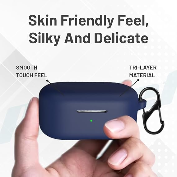 Prolet Silicone Case Compatible for Realme Buds T200x/T200Lite – Soft Shockproof & Dust-Proof Cover, 360° Full Protective Earbuds Case with Carabiner Hook | Anti-Scratch, Durable & Lightweight (Blue)