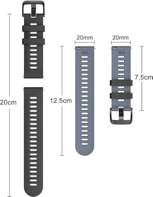 Prolet 20MM Soft Silicone Straps with Double Loop, Compatible with (ONLY 20mm Lugs Size) Samsung Galaxy Watch 4/ Watch 5, Amazfit GTS 2 Mini, Amazfit Bip, Amazfit GTS