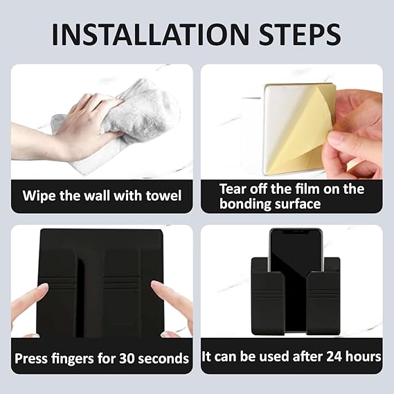 Prolet Wall Mount Multipurpose Mobile Holder Stylish & Convenient Charging Stand for Phones, Remotes (Black)