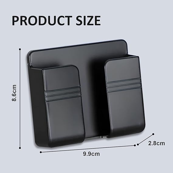 Prolet Wall Mounted Mobile Holder Storage Case for Remote, Wall Mounted Mobile Stand/Multi Purpose Stand with Hole for Phone Charging-Black(Pack of 2)