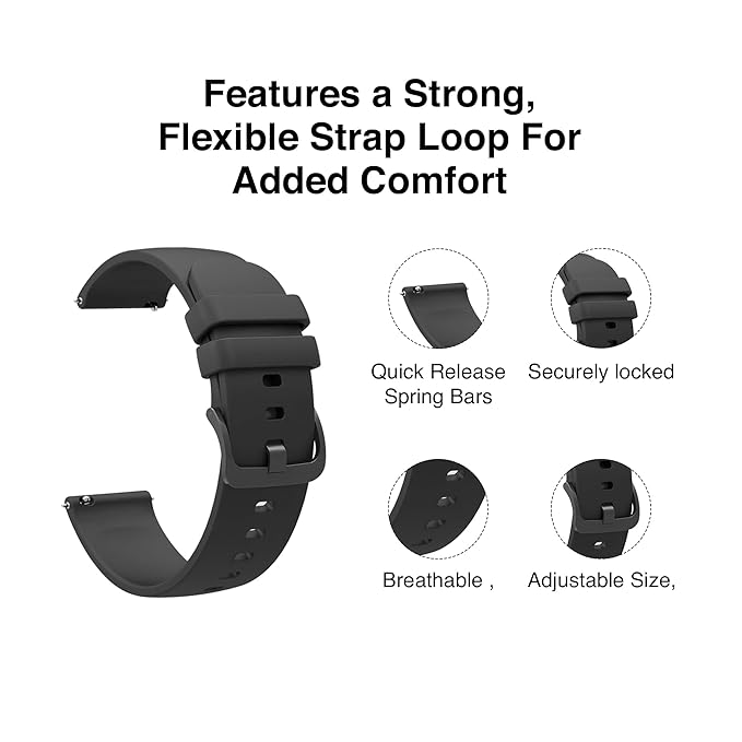 Prolet 20MM Soft Silicone Straps with Double Loop, Compatible with (ONLY 20mm Lugs Size) Samsung Galaxy Watch 4/ Watch 5, Amazfit GTS 2 Mini, Amazfit Bip, Amazfit GTS